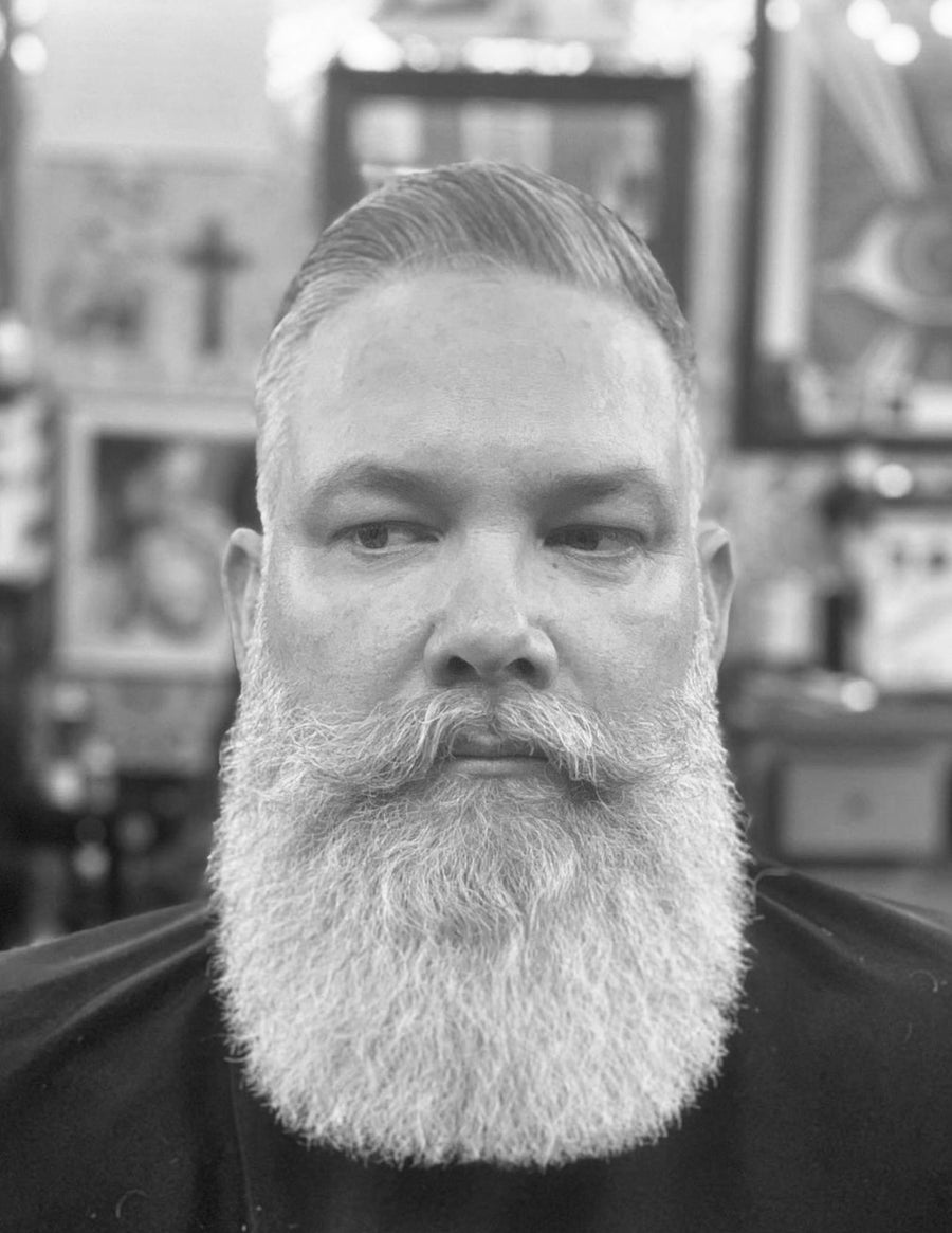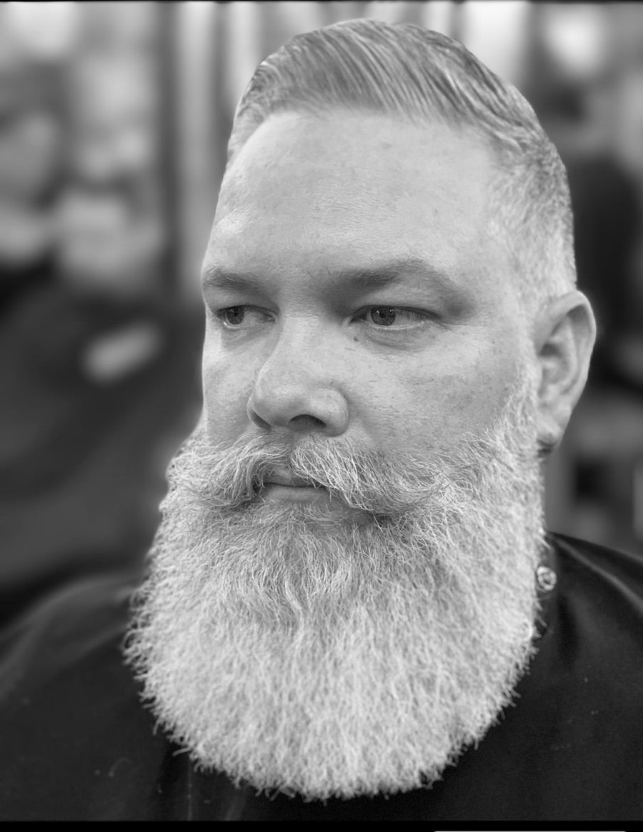 For the hair: blow dry, Layrite Natural Matte Creme. For the beard - Uppercut Beard Balm, Can You Handlebar Primary mustache wax